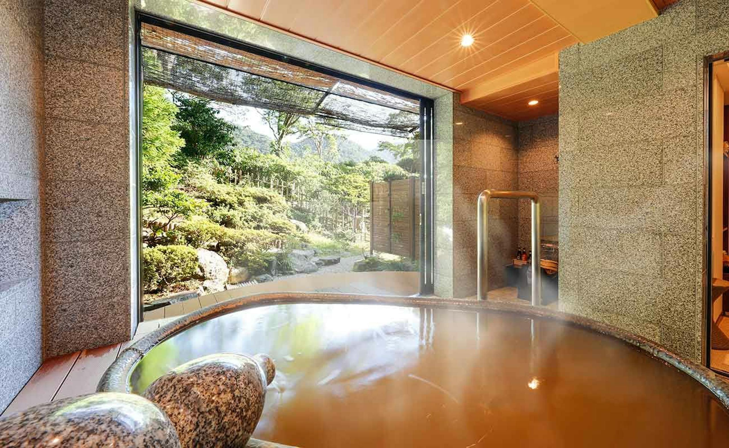 別にある”貴賓室 老松の間”というハイグレードなお部屋は「金泉」を楽しめる半露天風呂が付いています。