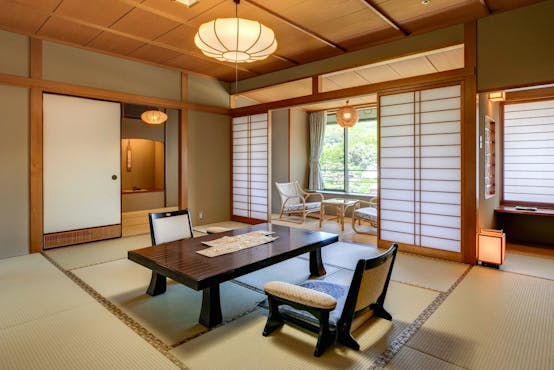 100室以上あるお部屋はれぞれに趣が異なり、和室をはじめ、和モダンなベッドタイプの和洋室、源泉掛け流し風呂がついた客室、贅沢な特別室など、様々なタイプのお部屋を選ぶことができます。